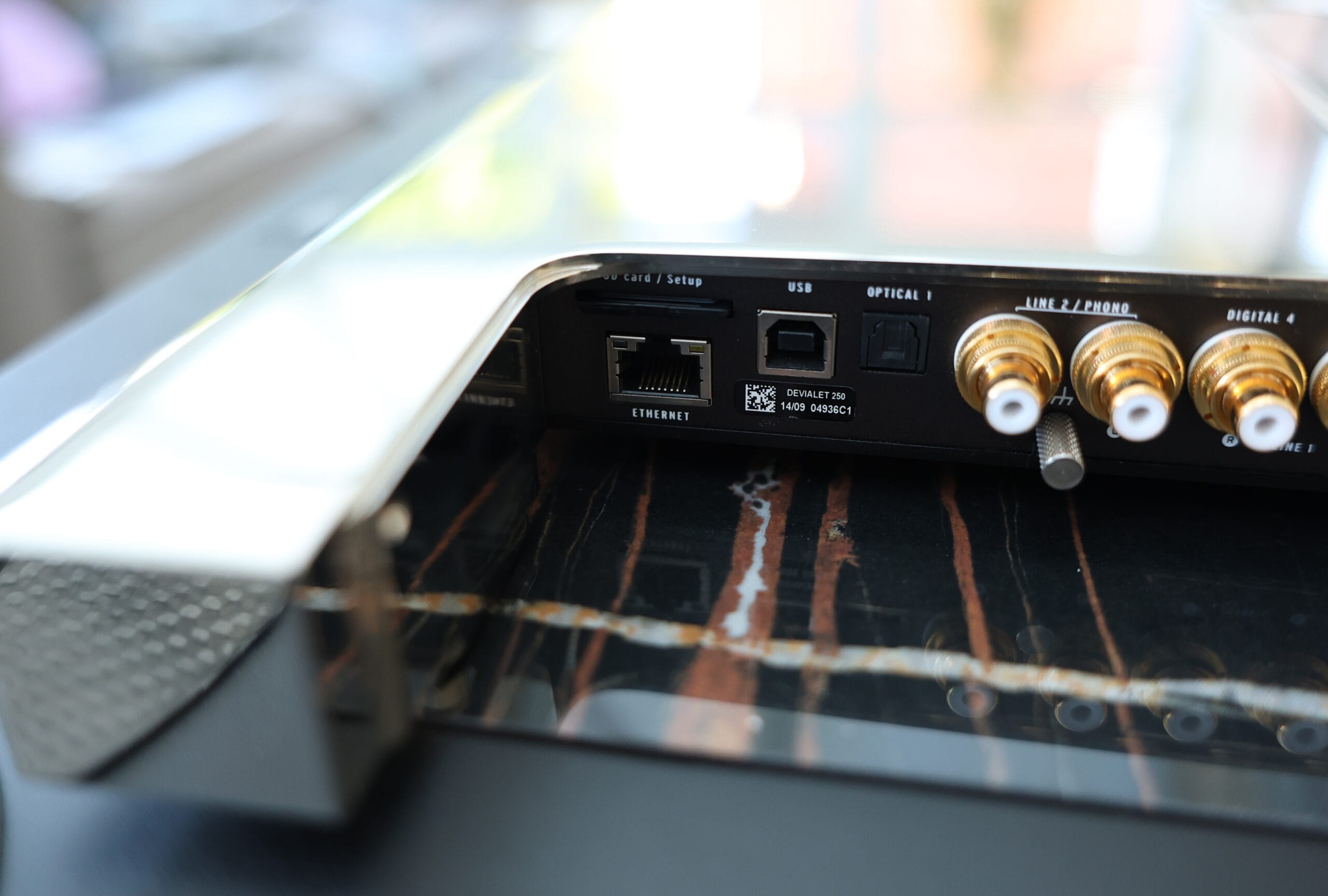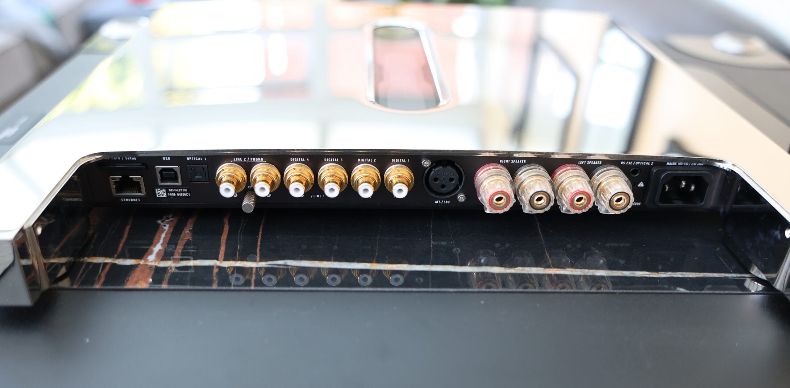 There is also an optical input, ethernet, 3 pairs of RCA terminals can be configured as analogue pairs or digital within the configurator, there is also an AES EBU input