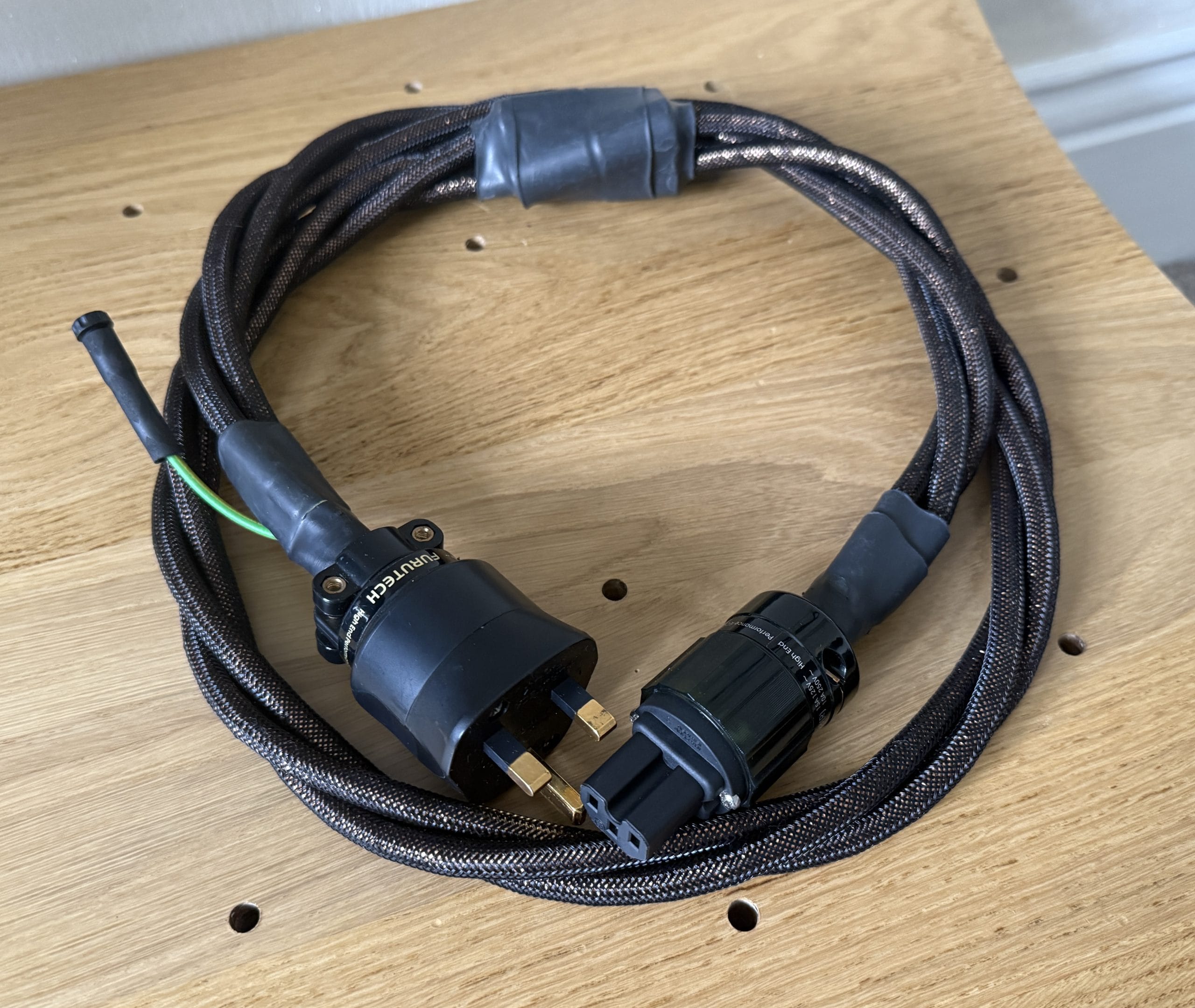 Terminated with a Furutech 1363 Gold UK plug and a Furutech FI-28 Rhodium IEC connectors (C15)